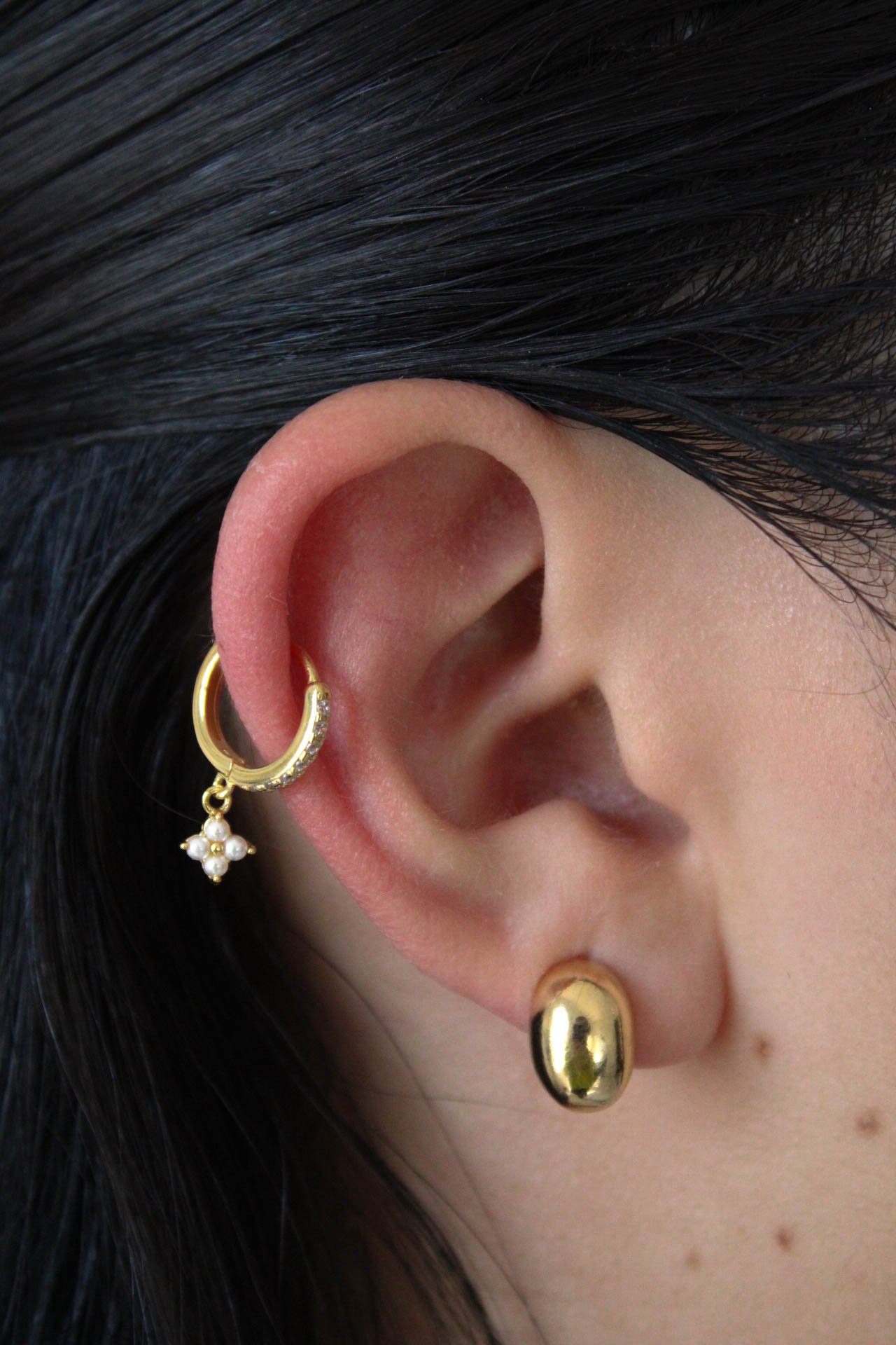 Plata .925 con baño de oro, zirconia y perlitas.