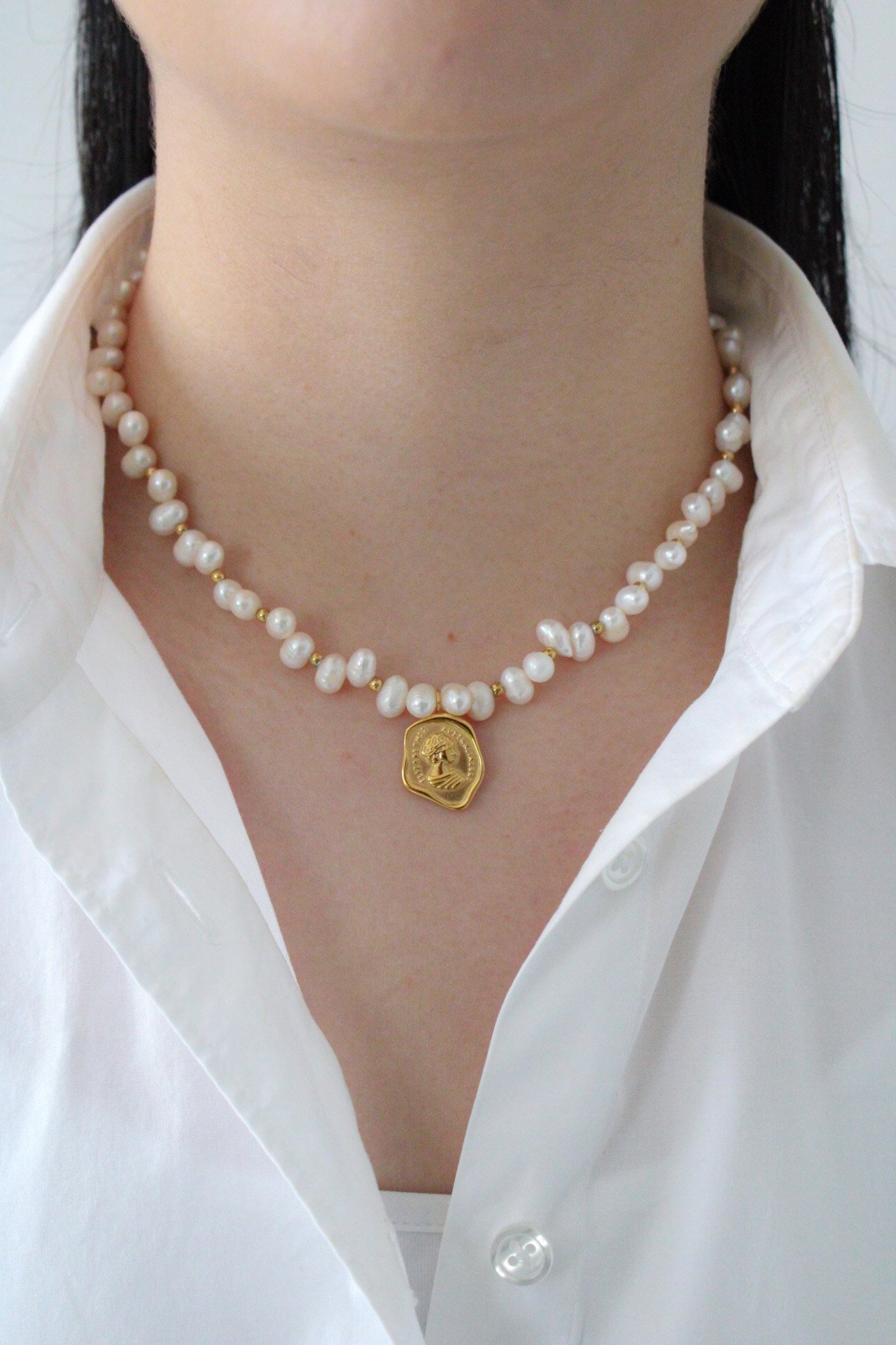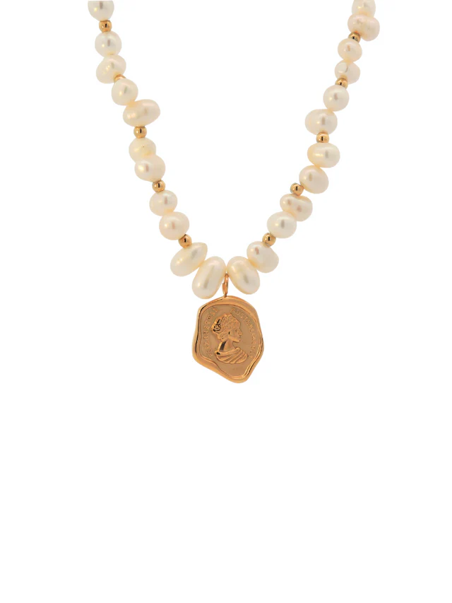 Acero inoxidable con chapa de oro 18k y perla.