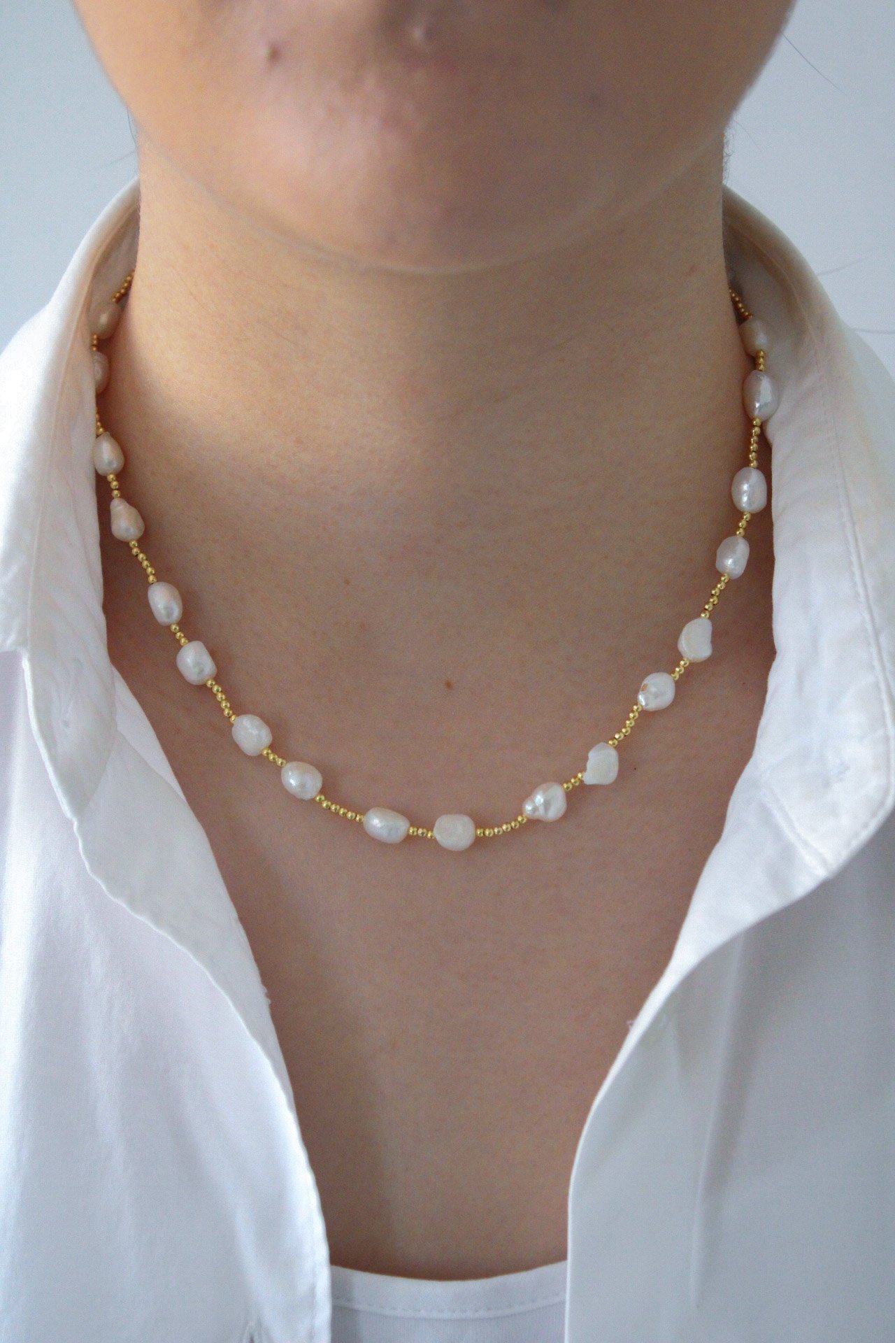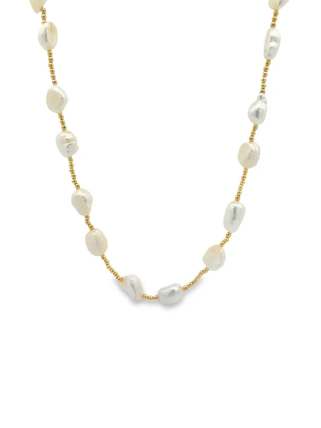 Collar Perlas Naturales con Bolitas Doradas