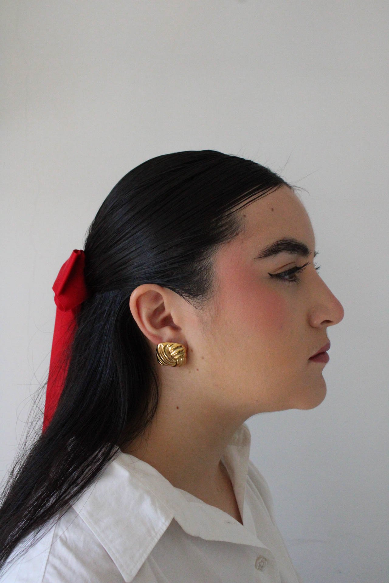 Par Arete Cuadrado Tejido Dorado