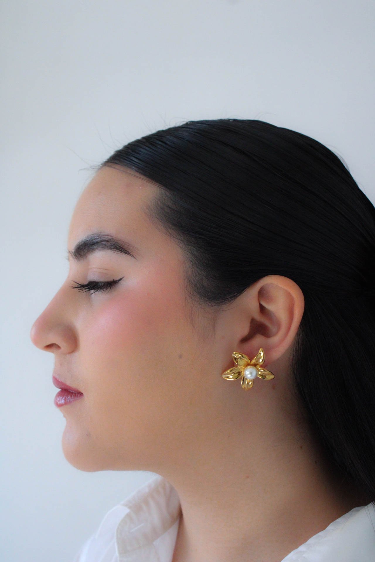 Par Arete Flor Con Perla